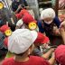 野口町凧揚會の糸目付けでした。 初凧の糸目を無事に付け、麩の屋に遊びに来てくれました!青襷の皆さんに緑色のさくら棒を。